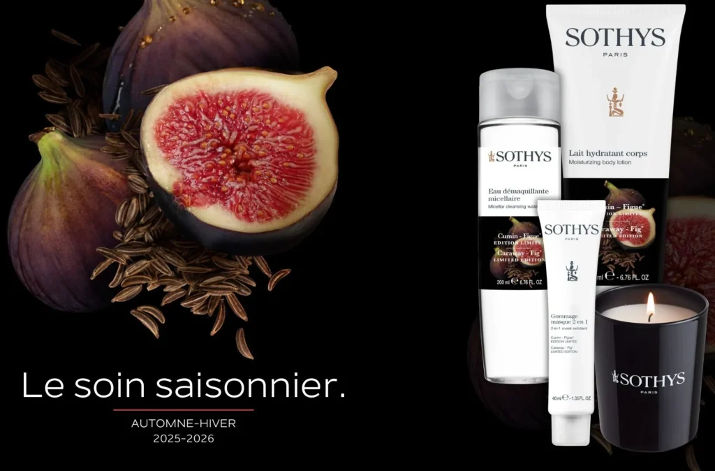 Découvrez les notes fruitées et épicées de Cumin et Figue pour le Soin saisonnier Automne- Hiver 2025.Une peau détoxifiée et éclatante en 45min. Pour tous types de peau.
