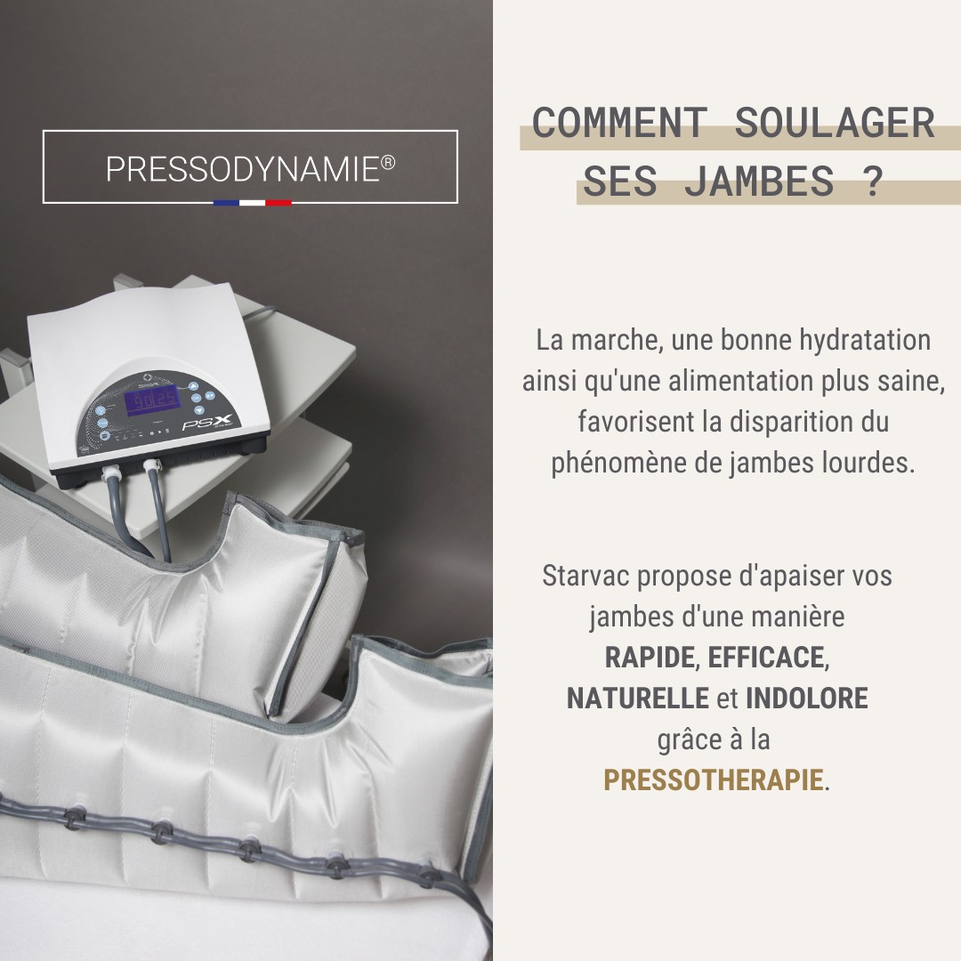 Grâce à une pression et des vagues exercées dans des bottes, la pressodynamie stimule et relance les circulations veineuses et lymphatiques.